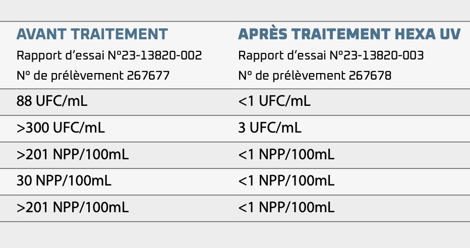 HEXA UV BIOLISME RÉSULTATS TRAITEMENT DE L’EAU